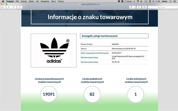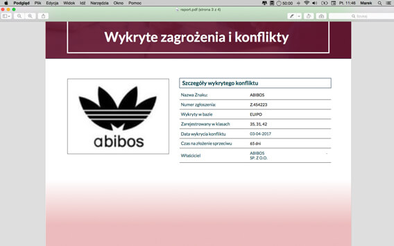 Otrzymasz także informację o próbie rejestracji podobnych znaków towarowych.